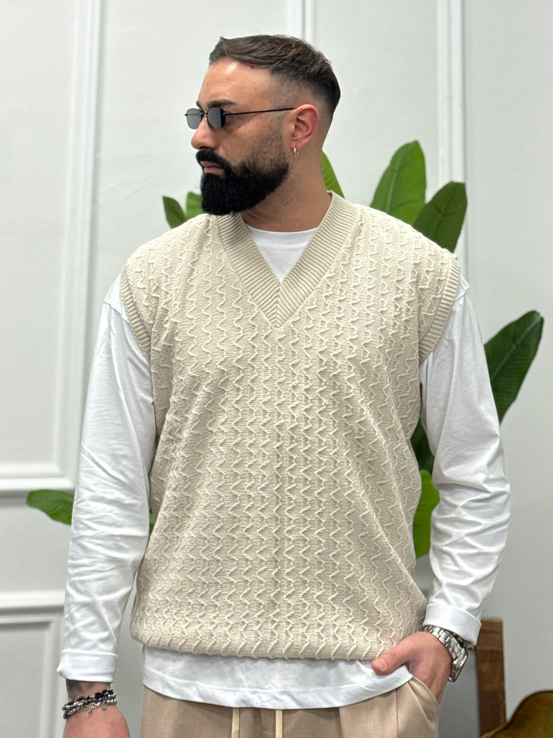 Pullover smanicato beige new job brand