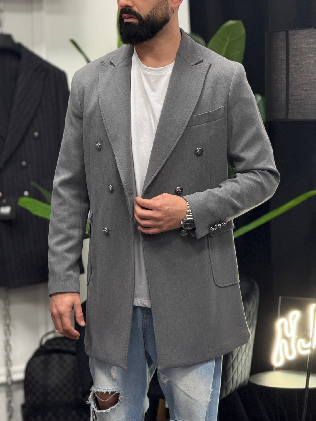 Cappotto gioiello grigio new job brand