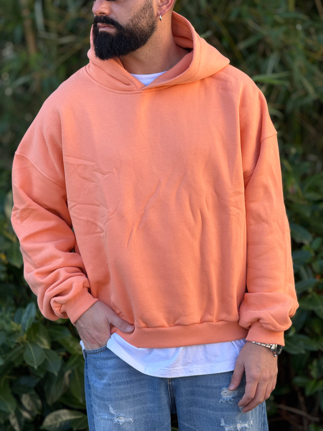 Felpa oversize cappuccio pesca new job brand