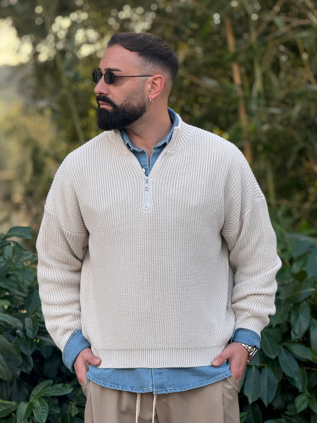 Pullover mezza zip beige new job brand