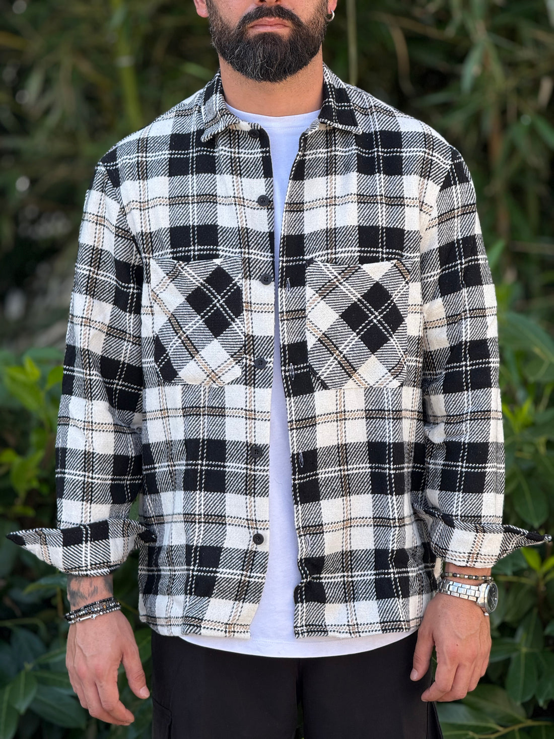 Modello 1,80 85 kg indossa taglia L(48) coordinato formato da camicia zip+ pantalone fondo largo...
