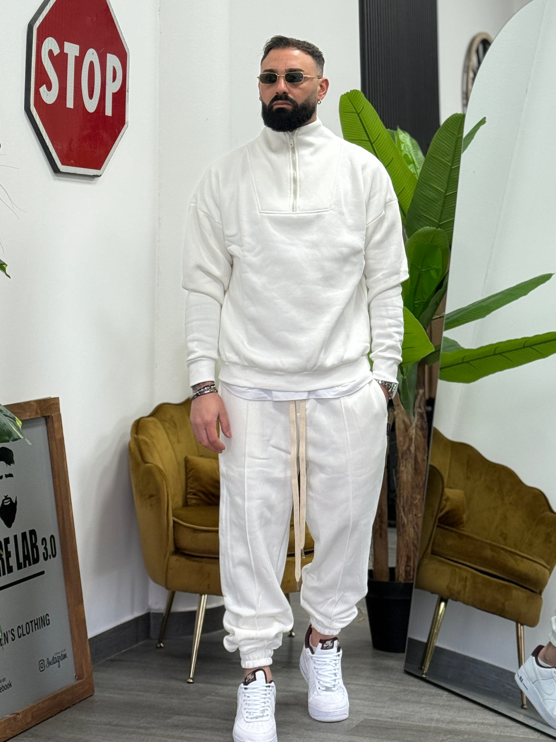 Tuta reset bianca over new job brand