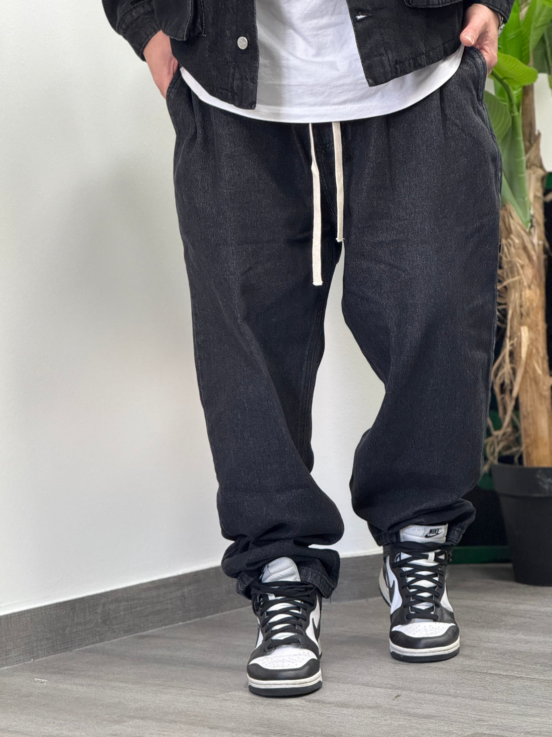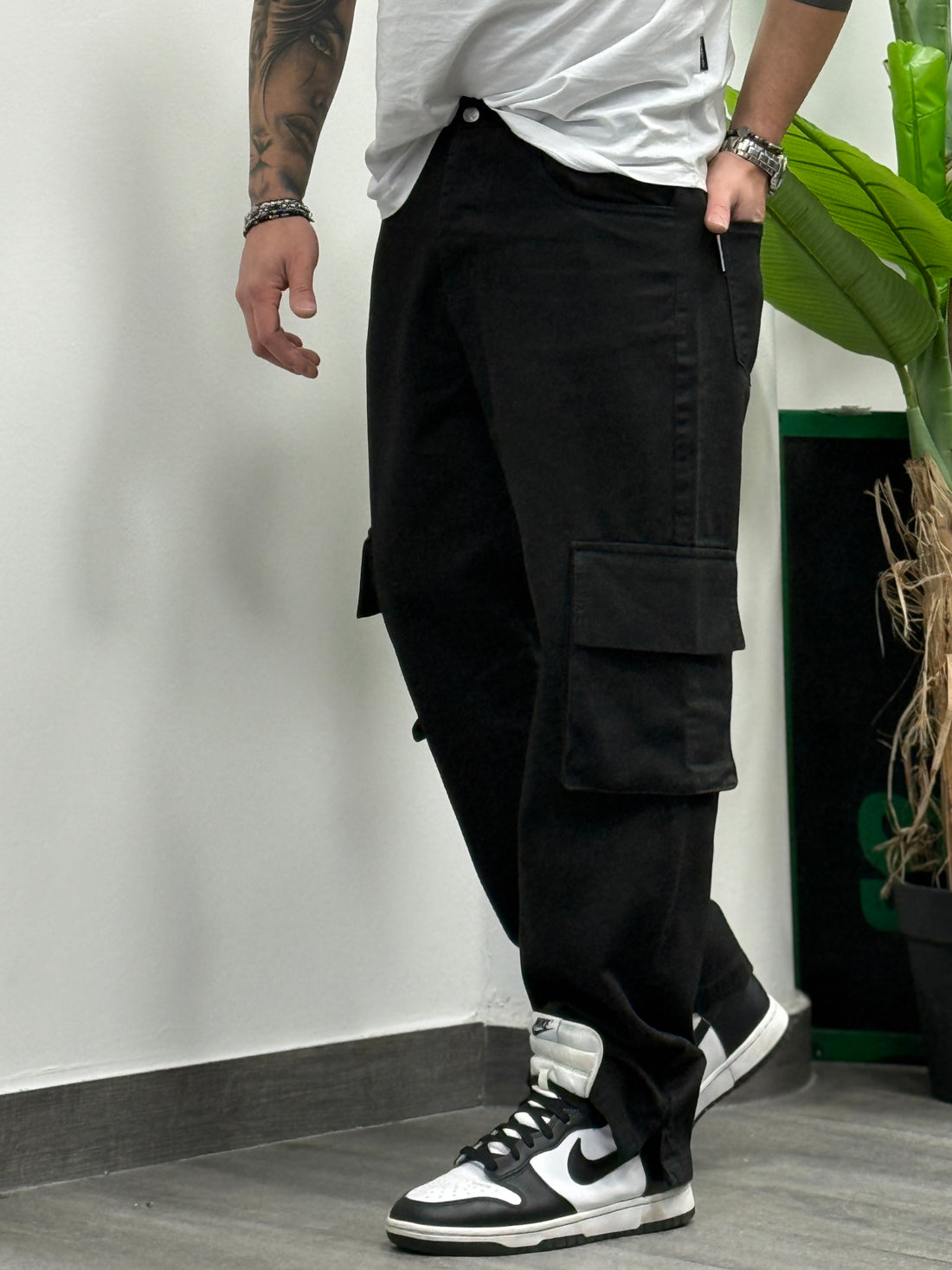 Jeans cargo con spacco nero new job brand