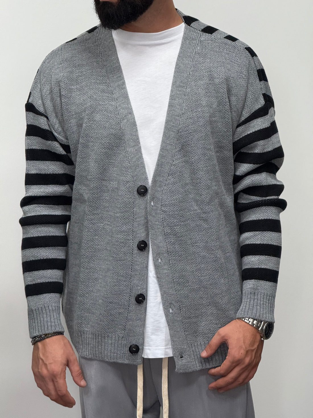 Cardigan oversize grigio fasciato in nero New Job Brand