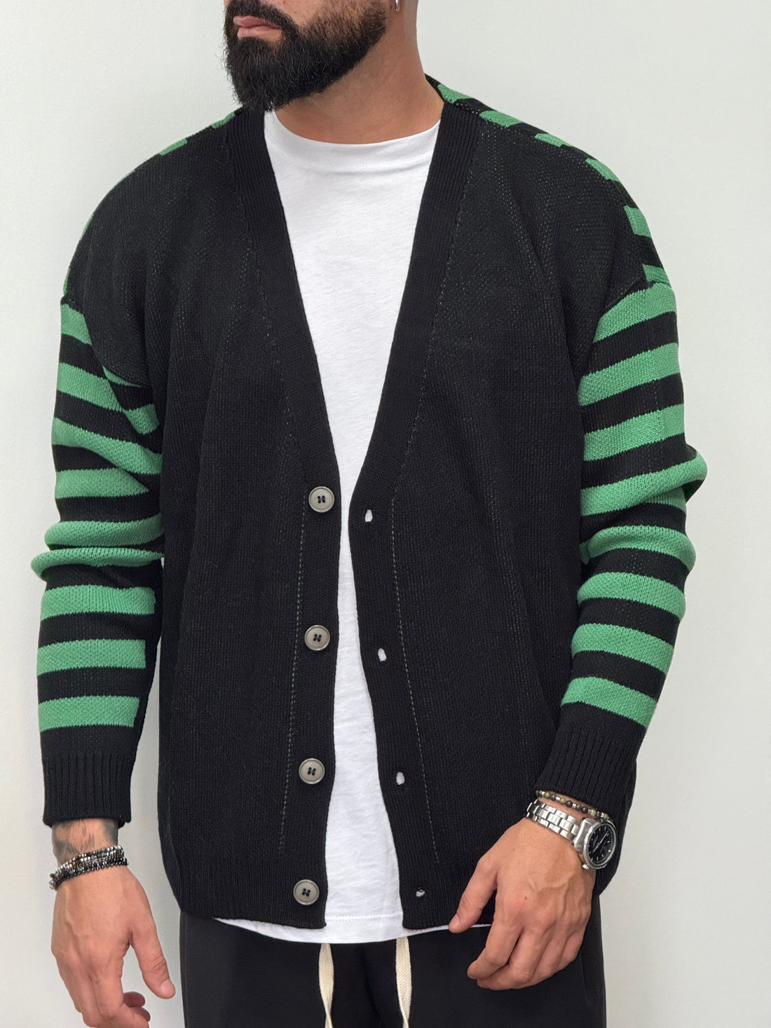 Cardigan oversize nero fasciato in verde New Job Brand