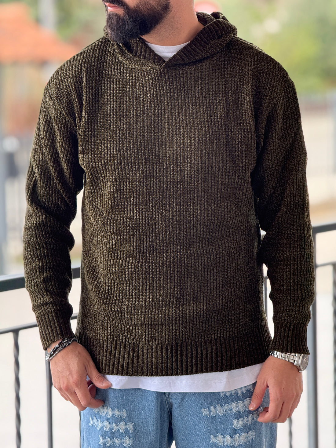 Pullover oversize cappuccio verde militare ciniglia new job brand