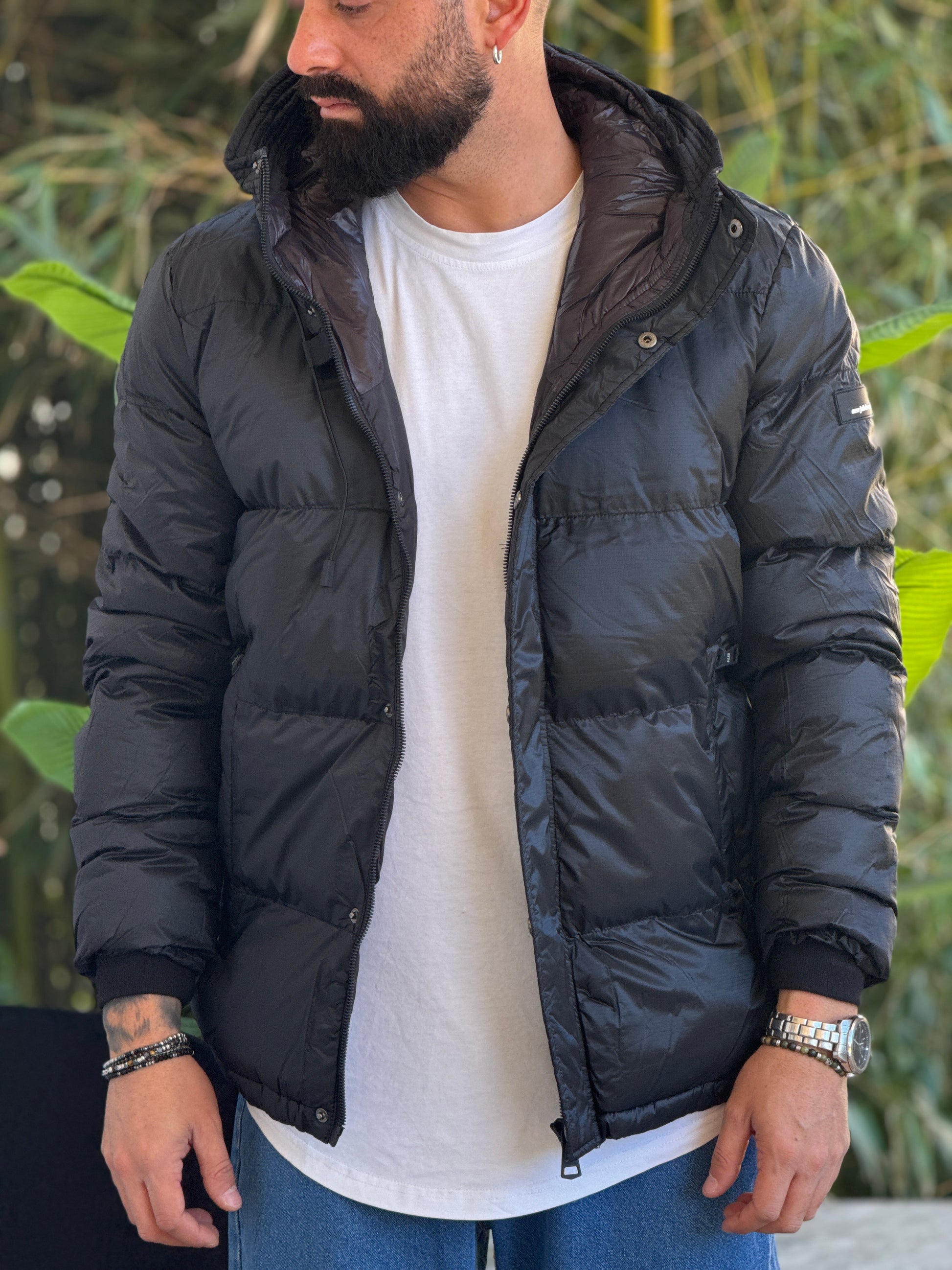 Bomber cappuccio nero new job brand
