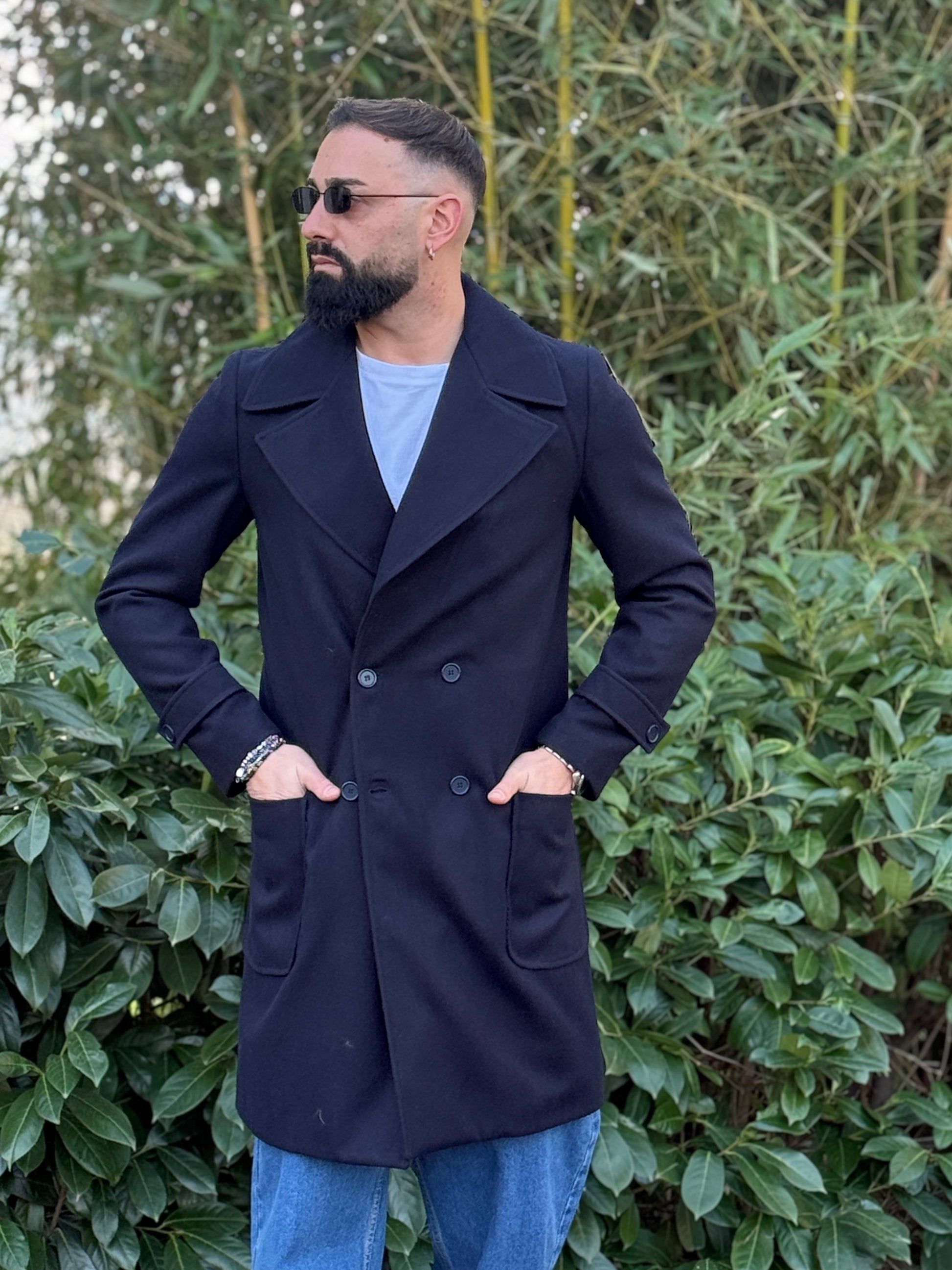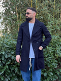 Cappotto doppiopetto blu 3/4