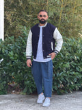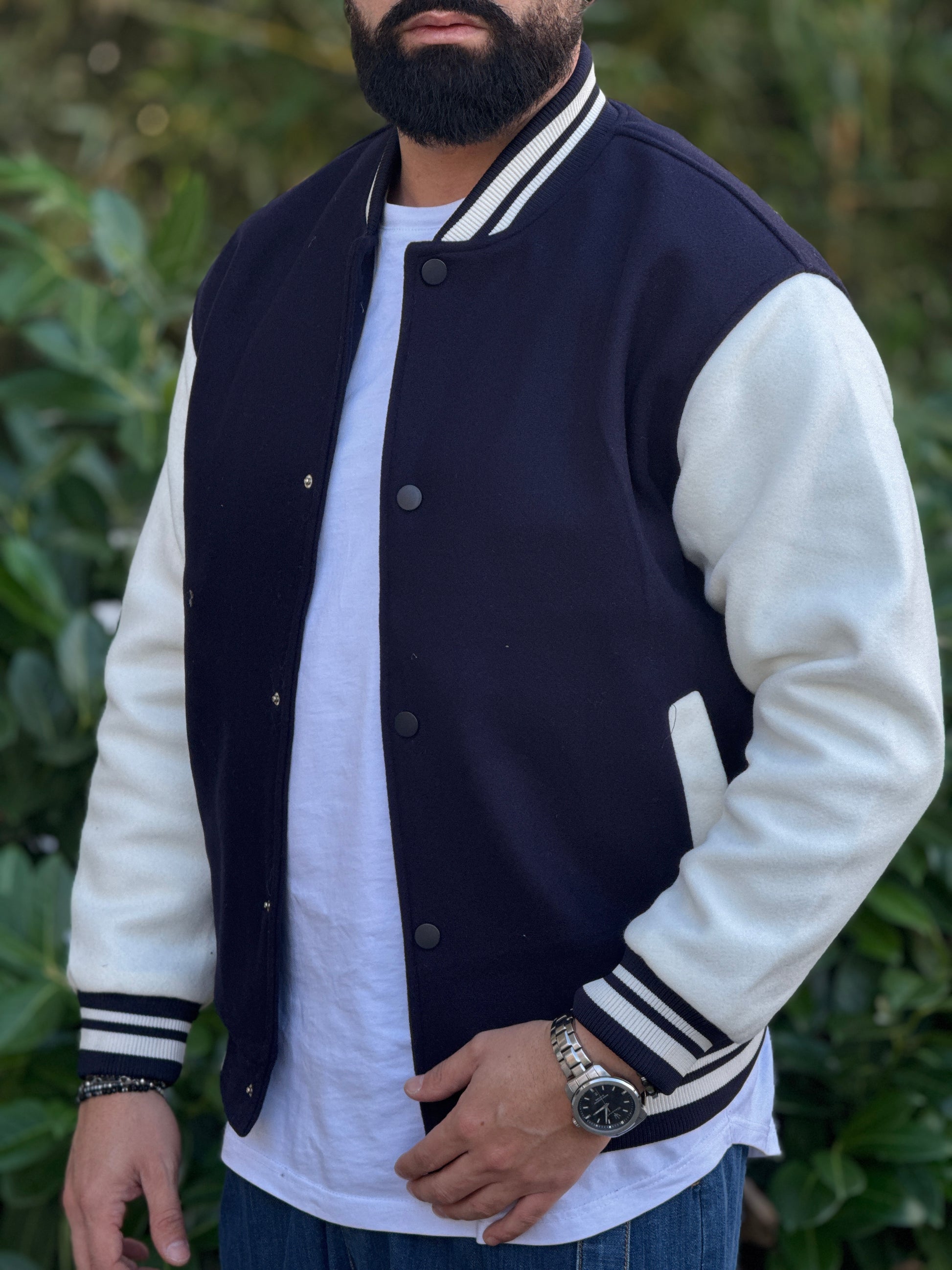 College Over blu con maniche bianche