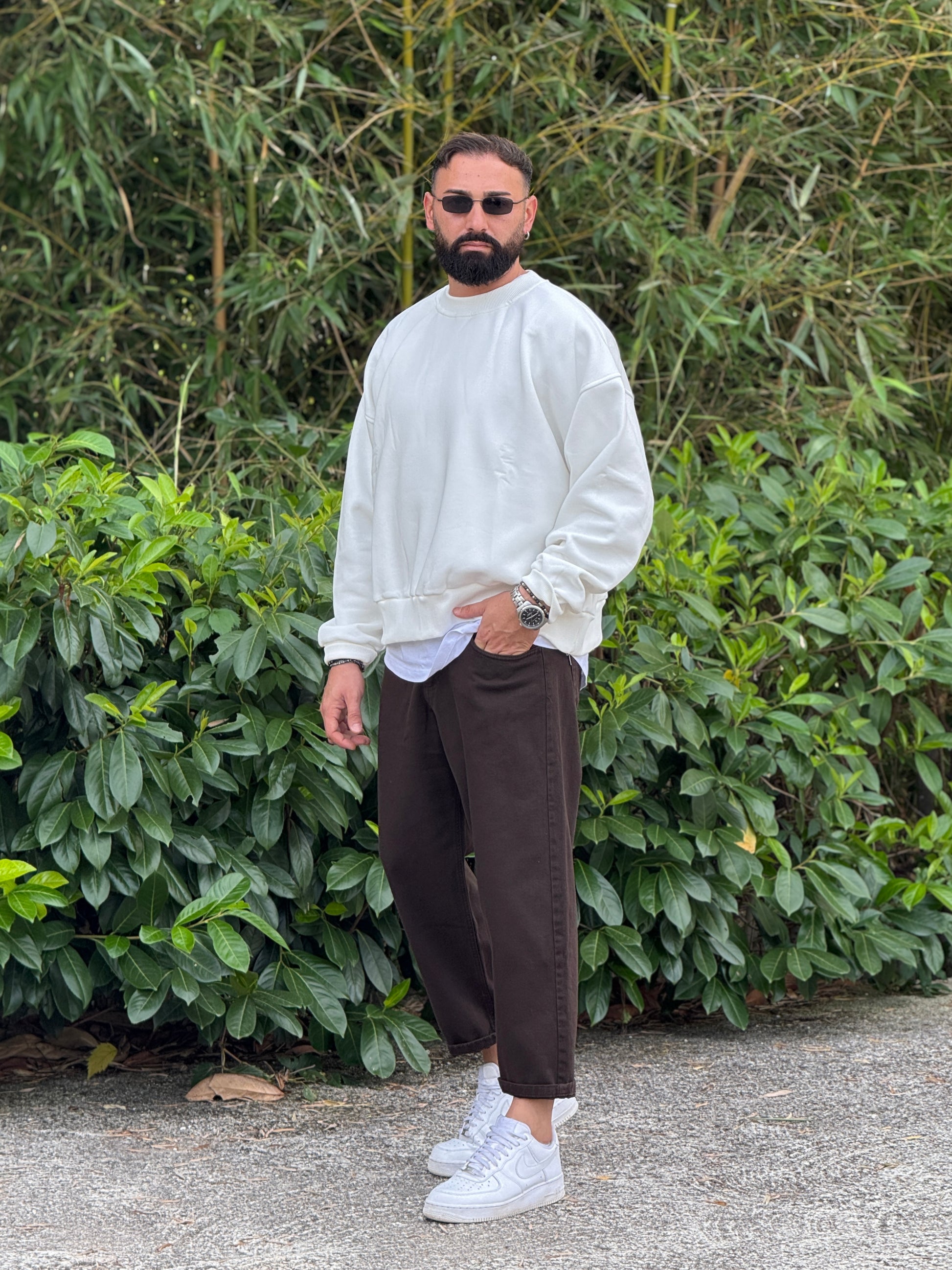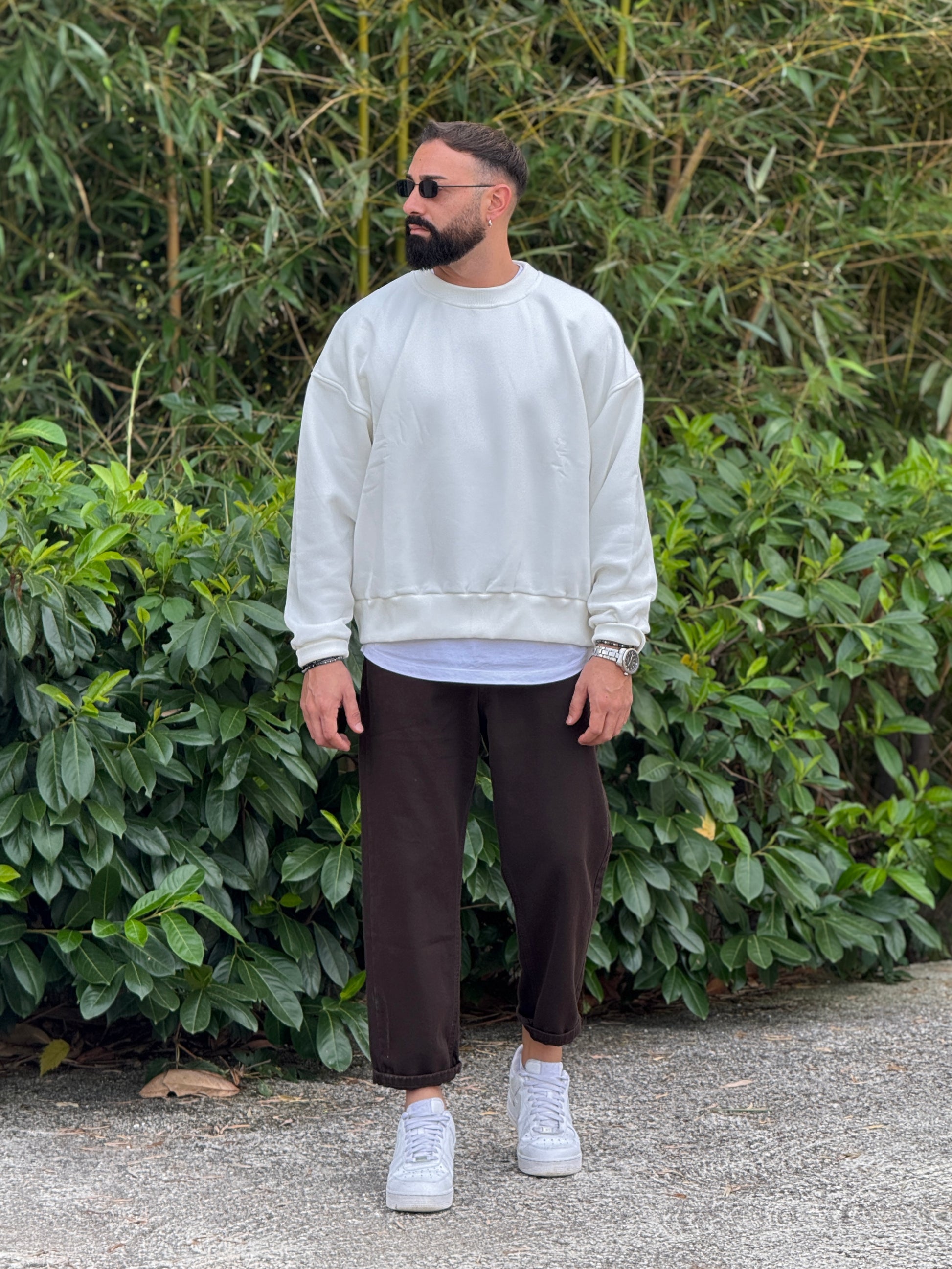 Felpa oversize bianco latte new job brand