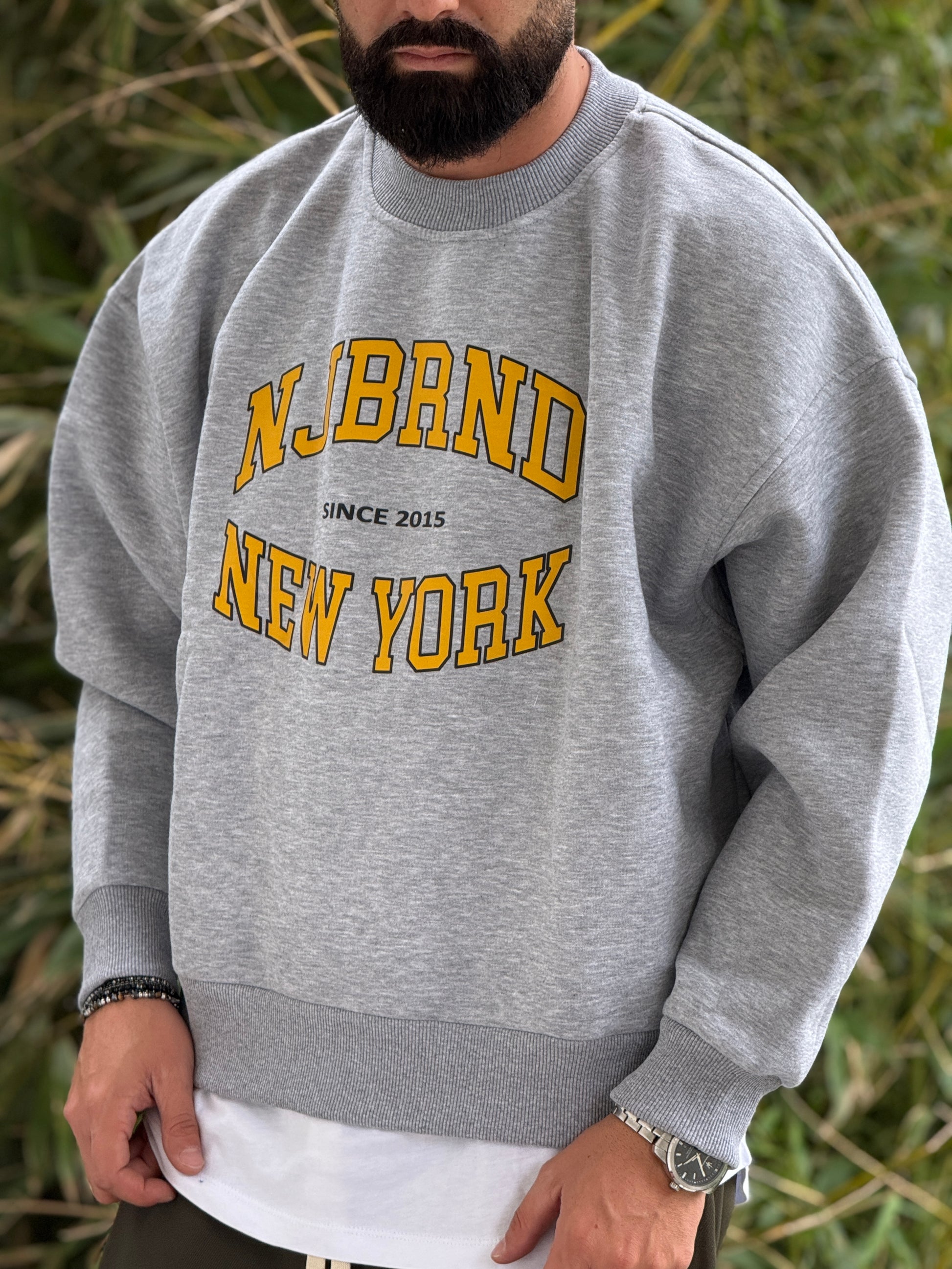 Felpa oversize cropped grigia new job brand