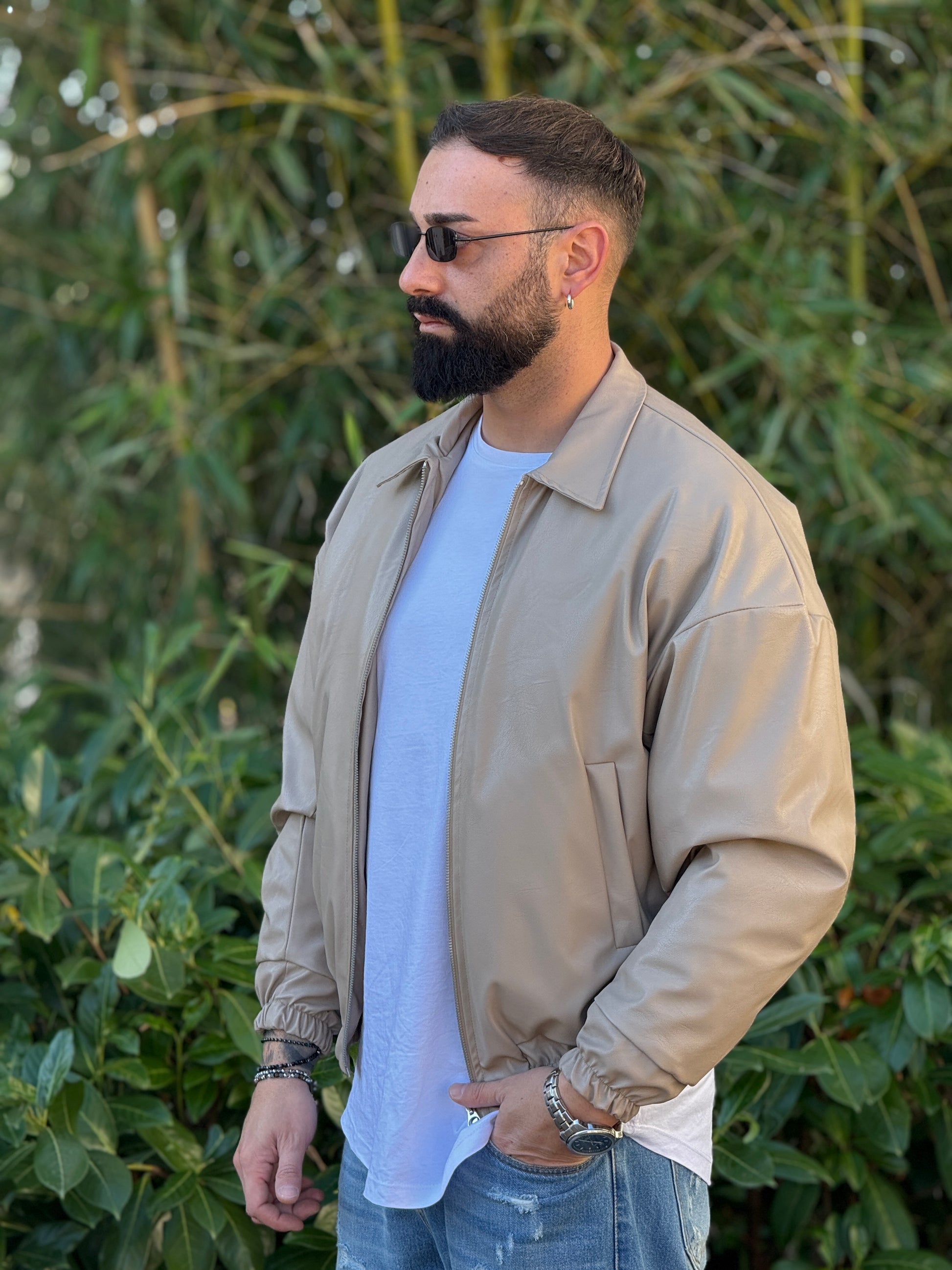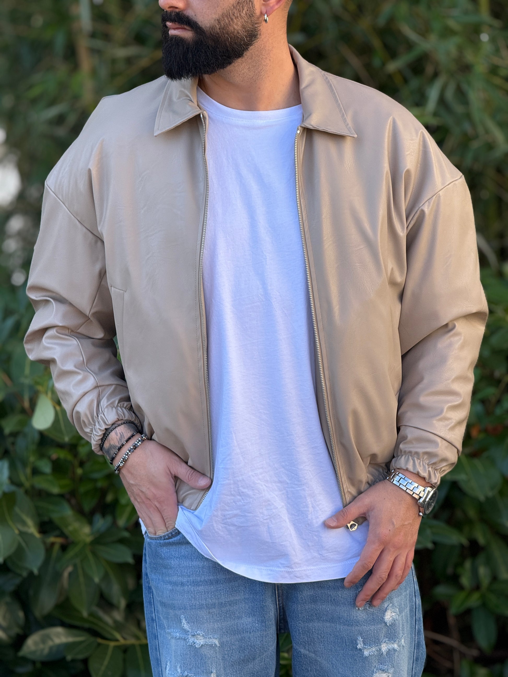 Giubbino in ecopelle imbottito beige over new job brand
