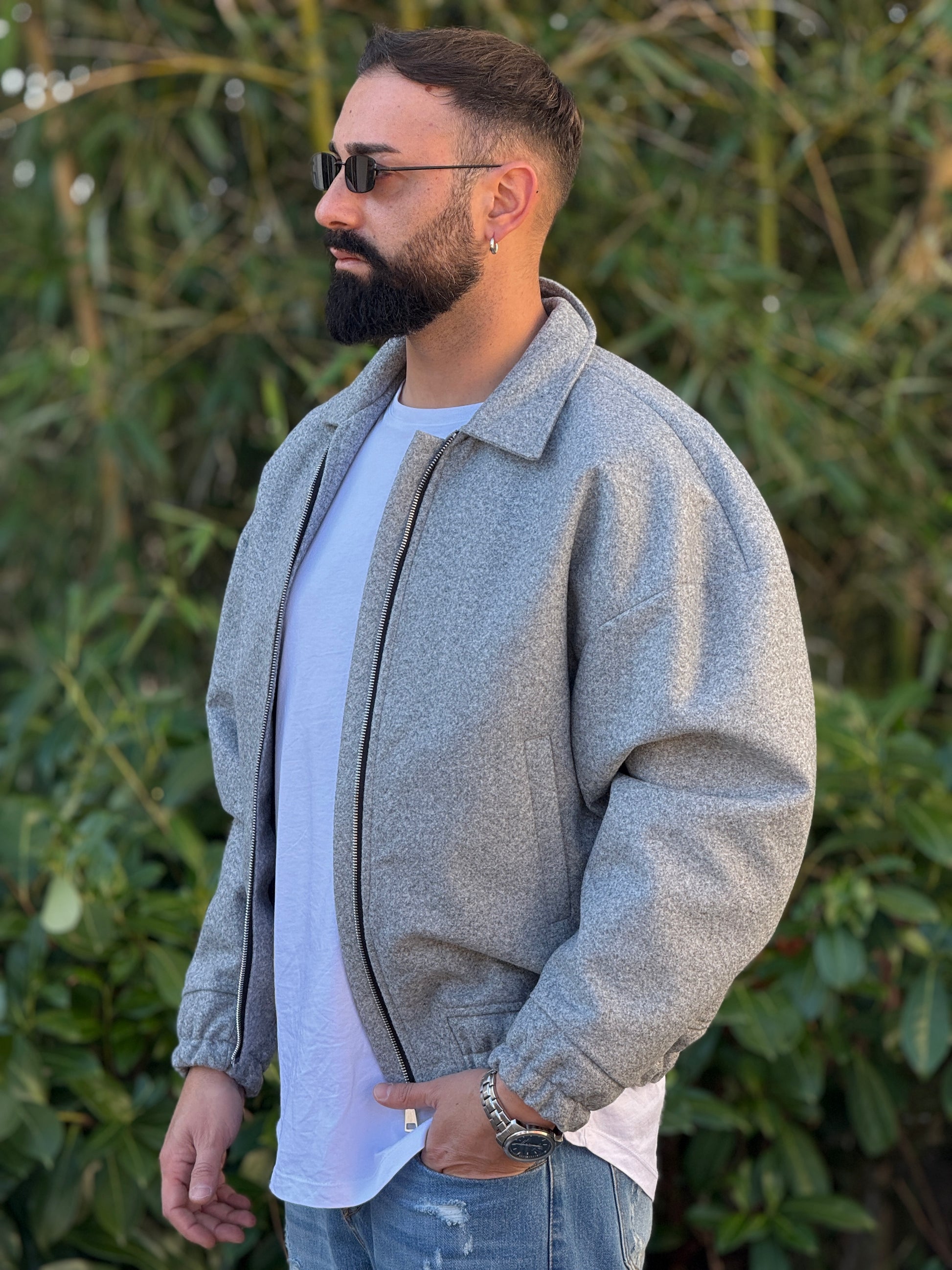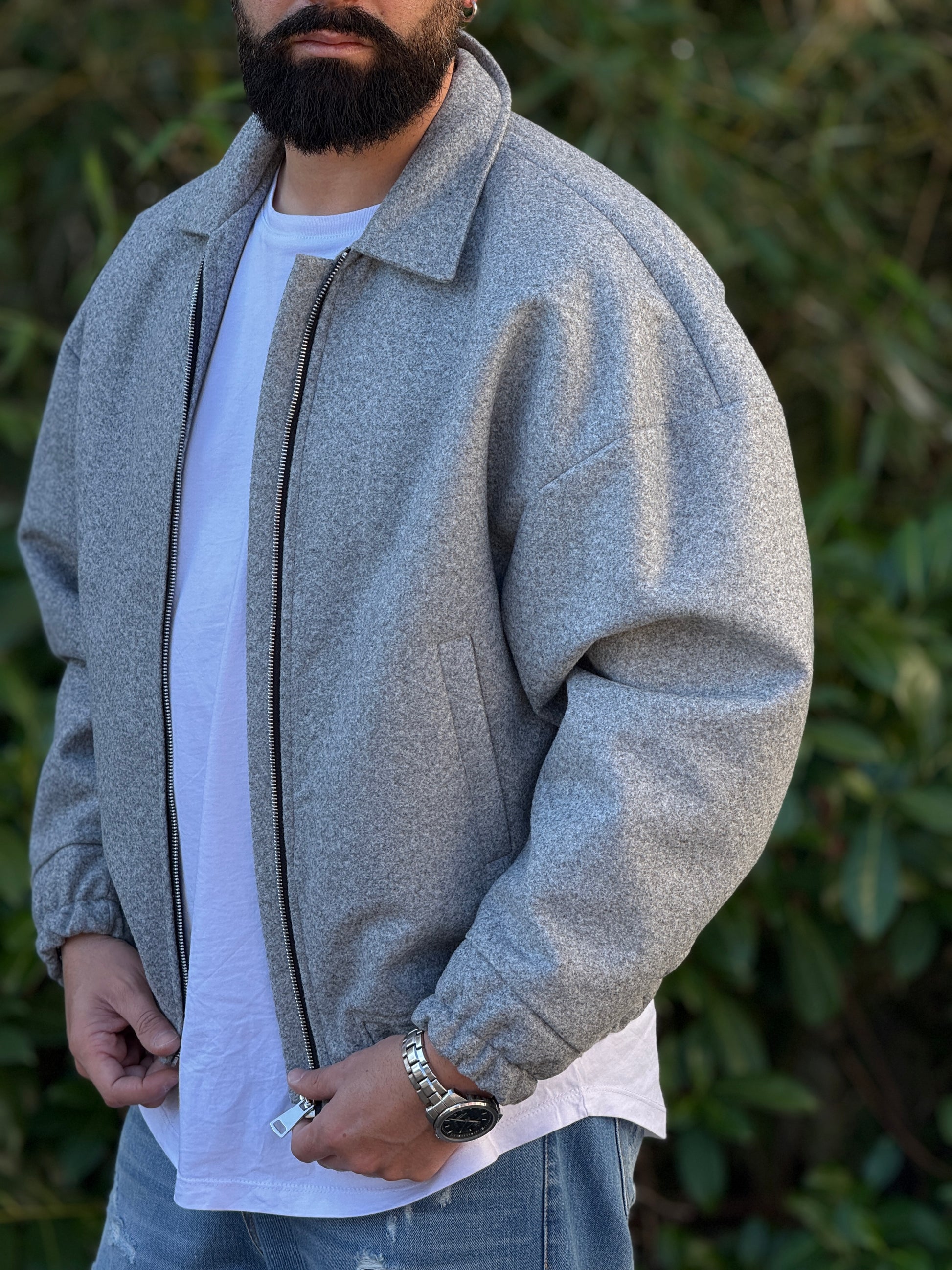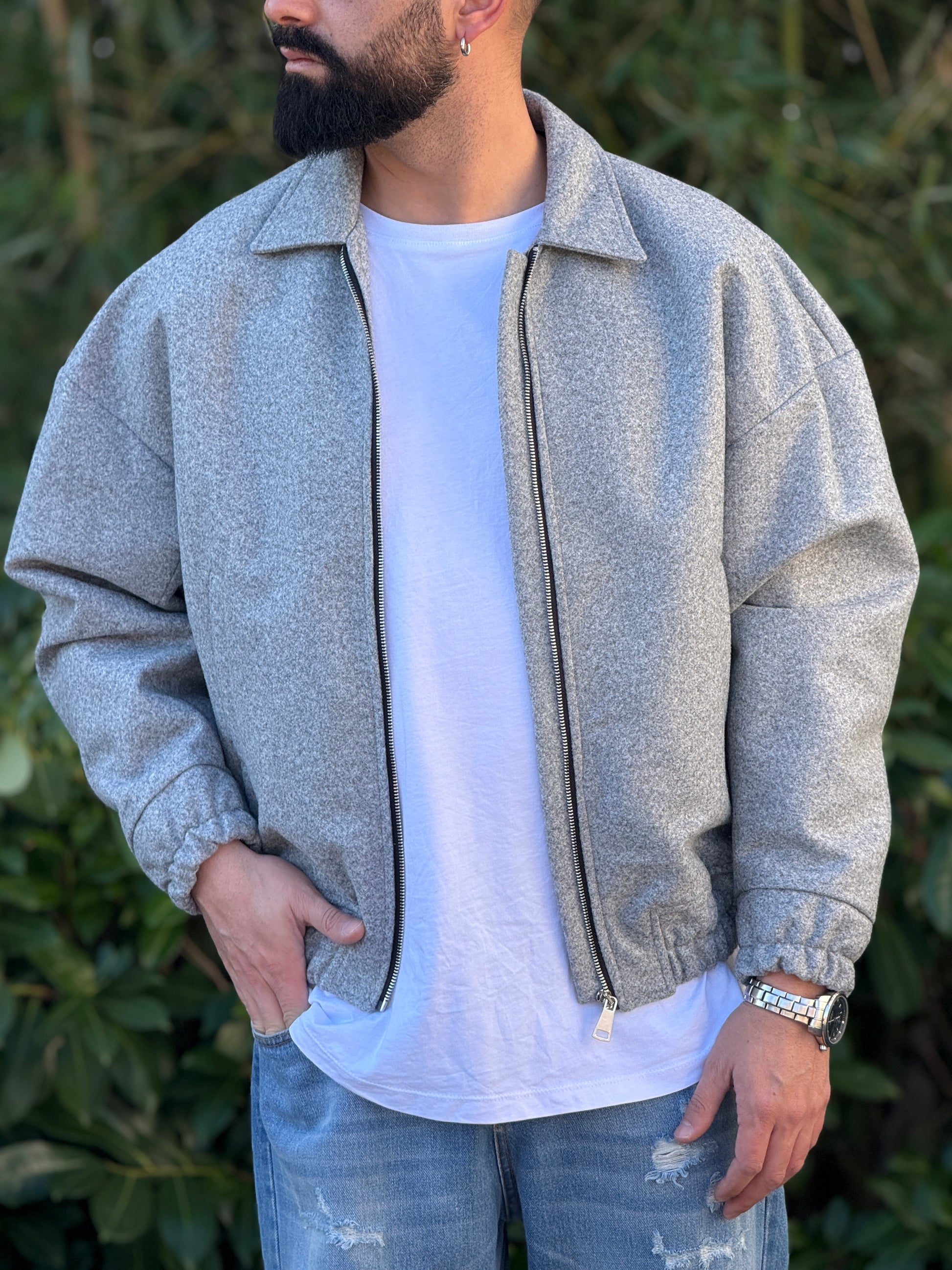 Giubbino in panno grigio over new job brand