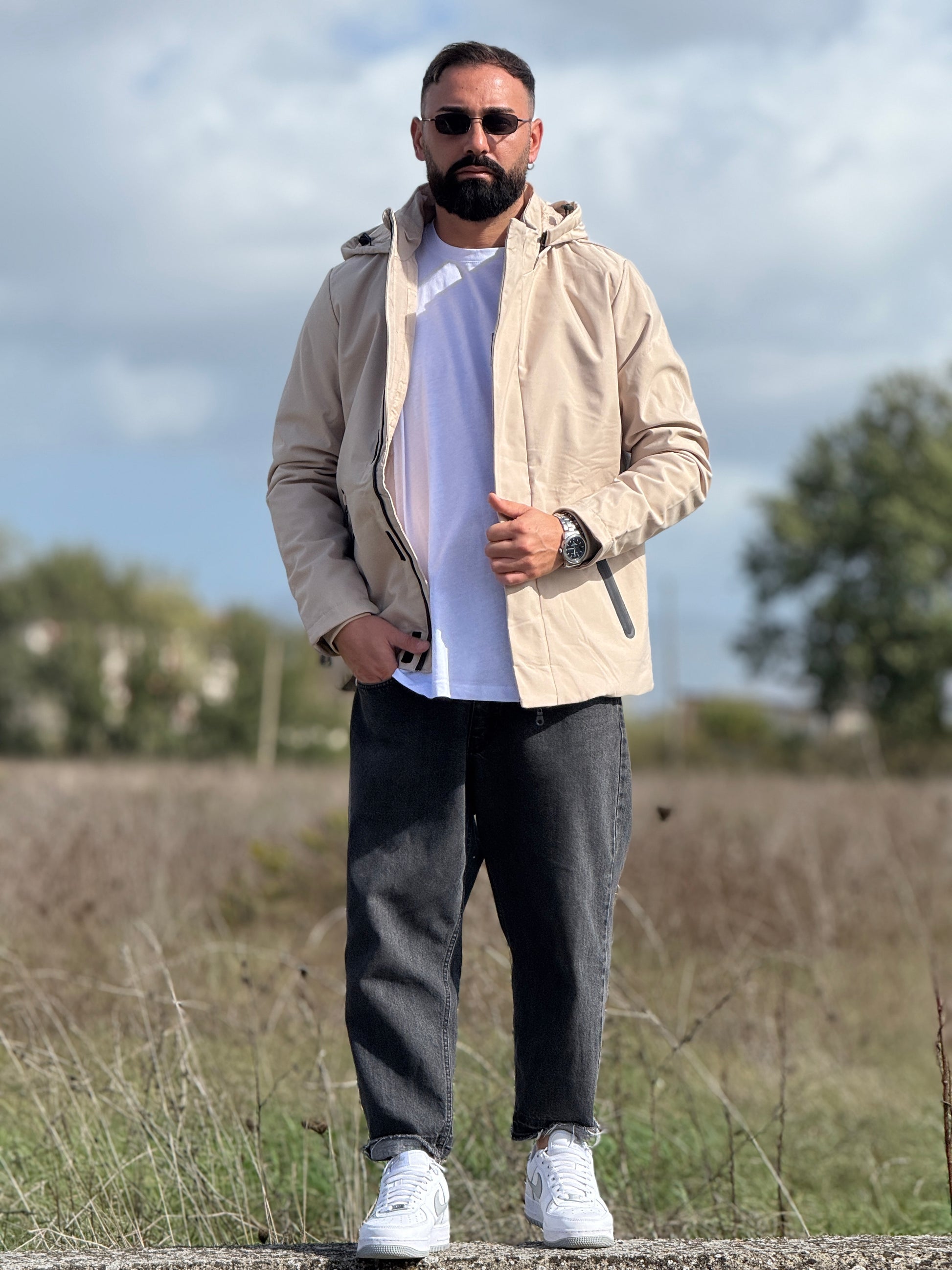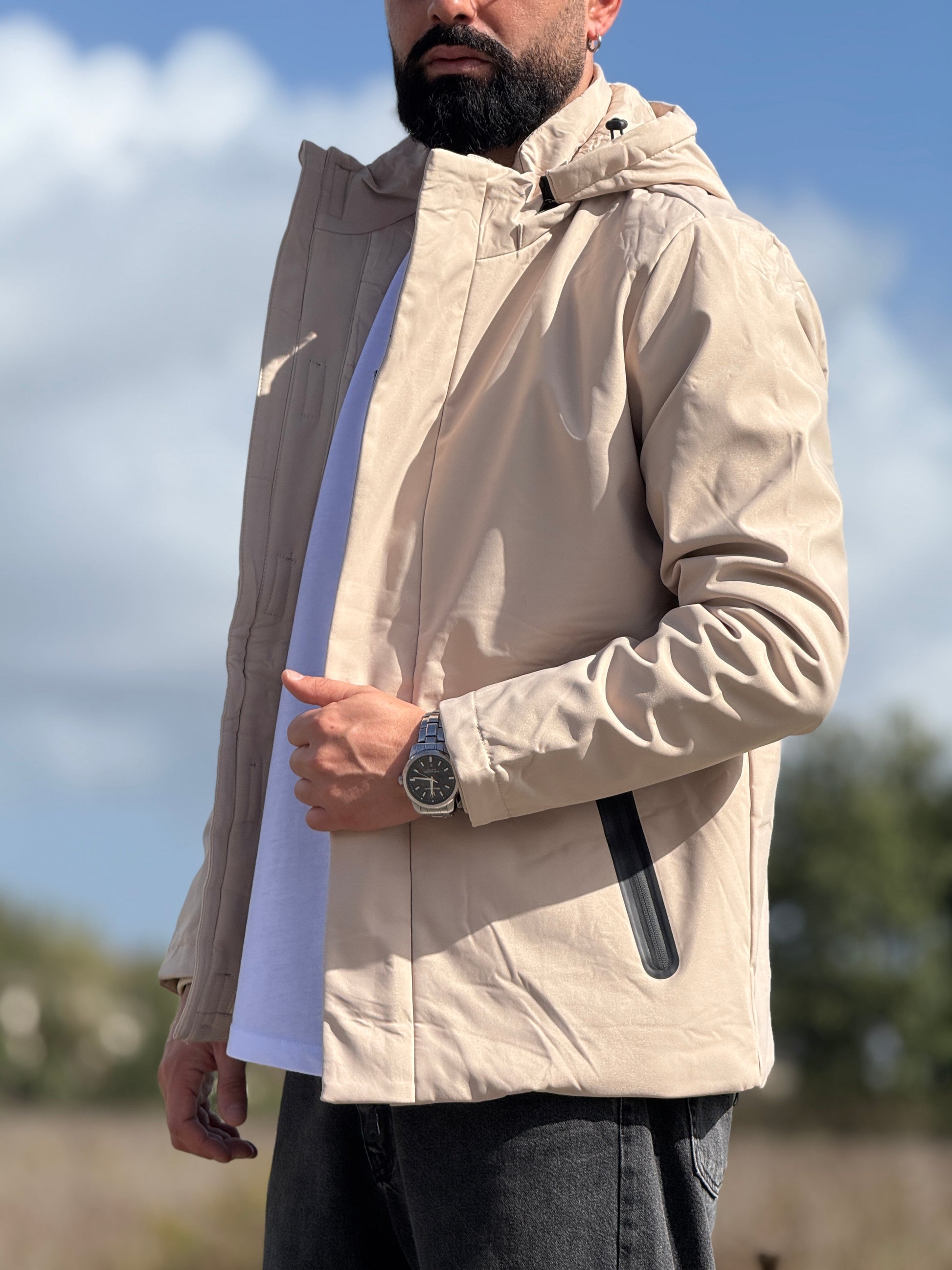 Giubbino tecnico avorio con cappuccio new job brand