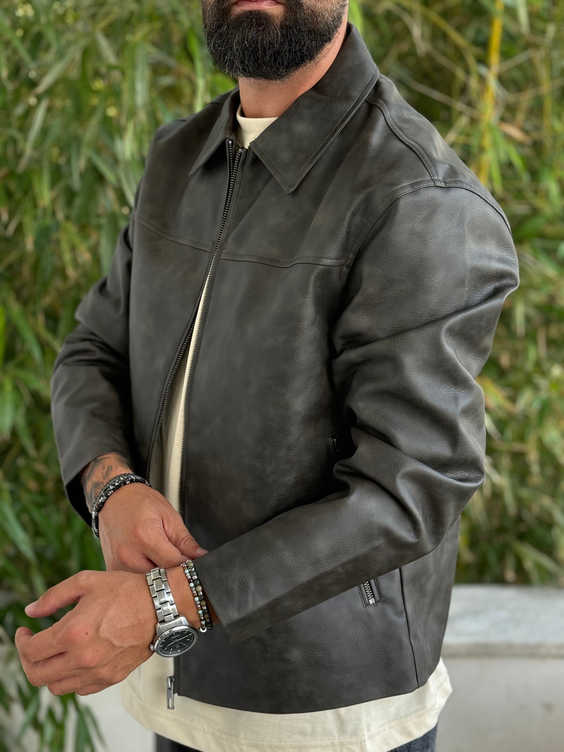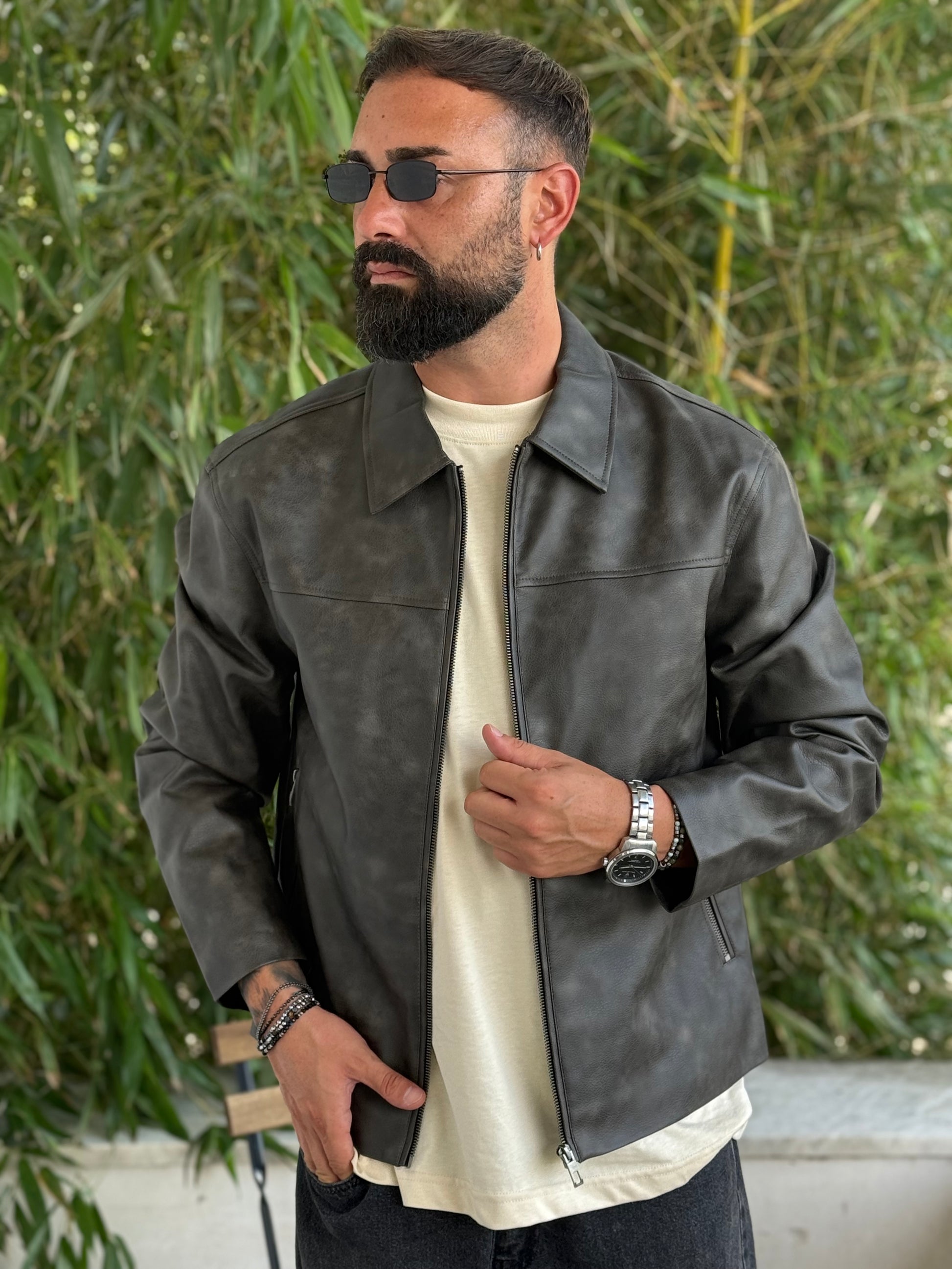 Jacket ecopelle martellato piombo
