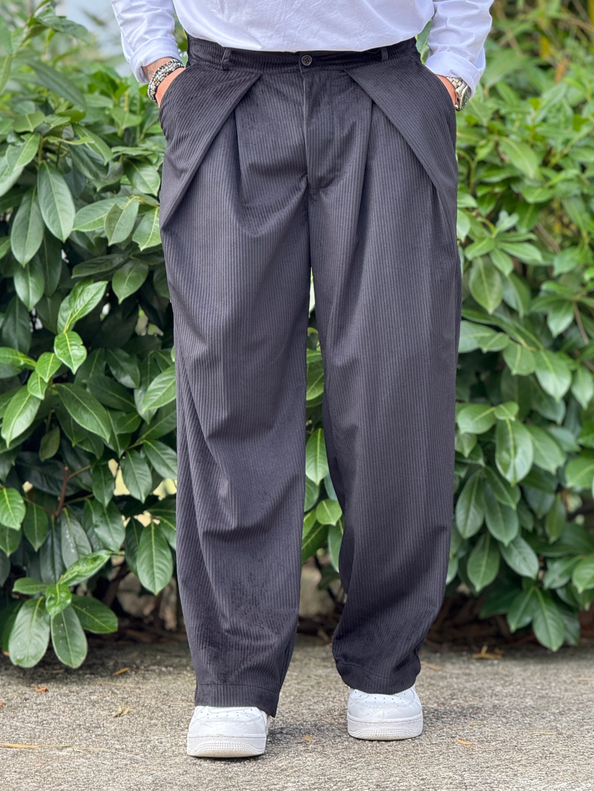 Pantalone Baggy pencione velluto nero new job brand