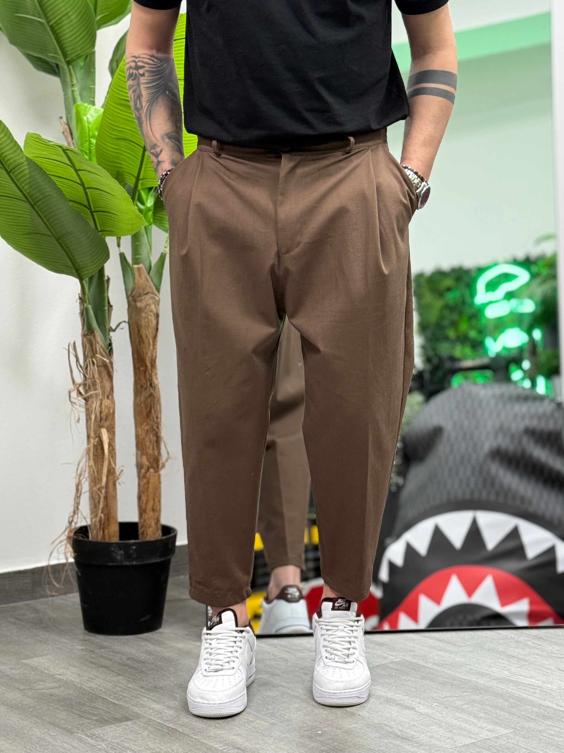Il *pantalone Montecarlo* è la scelta perfetta per chi ama un look versatile e contemporaneo. Realizzato con cura dal *New Job Brand*, presenta un *bottone in vita* e *pence frontali* che donano struttura e stile al capo.