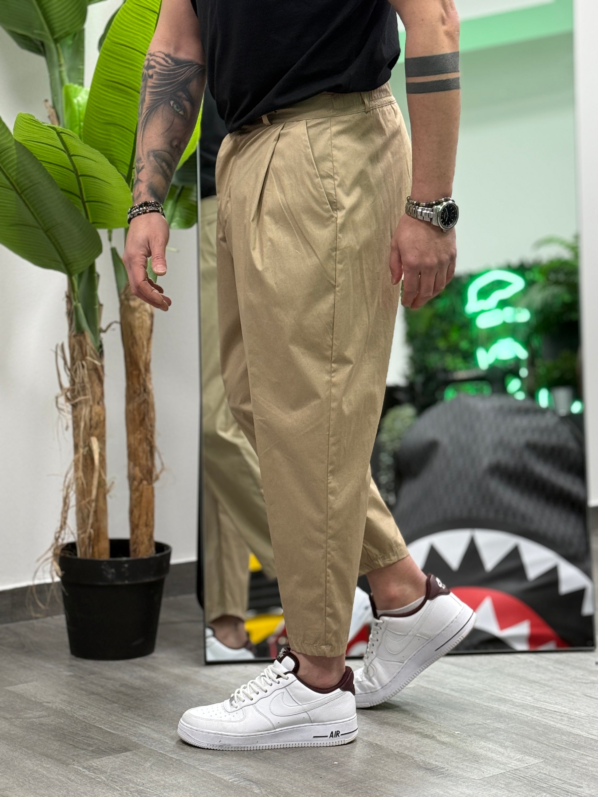 La sua *vestibilità morbida* lo rende comodo per l’intera giornata, mentre il taglio che *si restringe sul fondo* gli conferisce una silhouette moderna e affusolata. È il pantalone ideale per chi vuole passare da un look *casual* a uno *elegante o sportivo*,