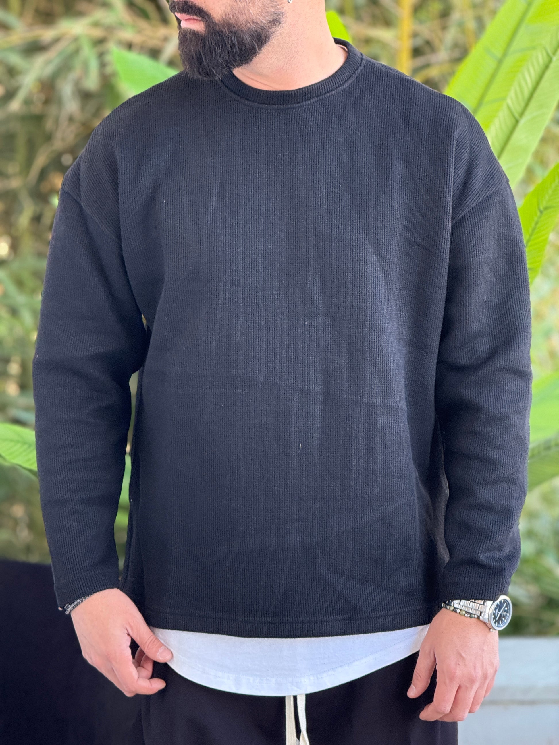 Pullover costina nero oversize con spacco verde new job brand