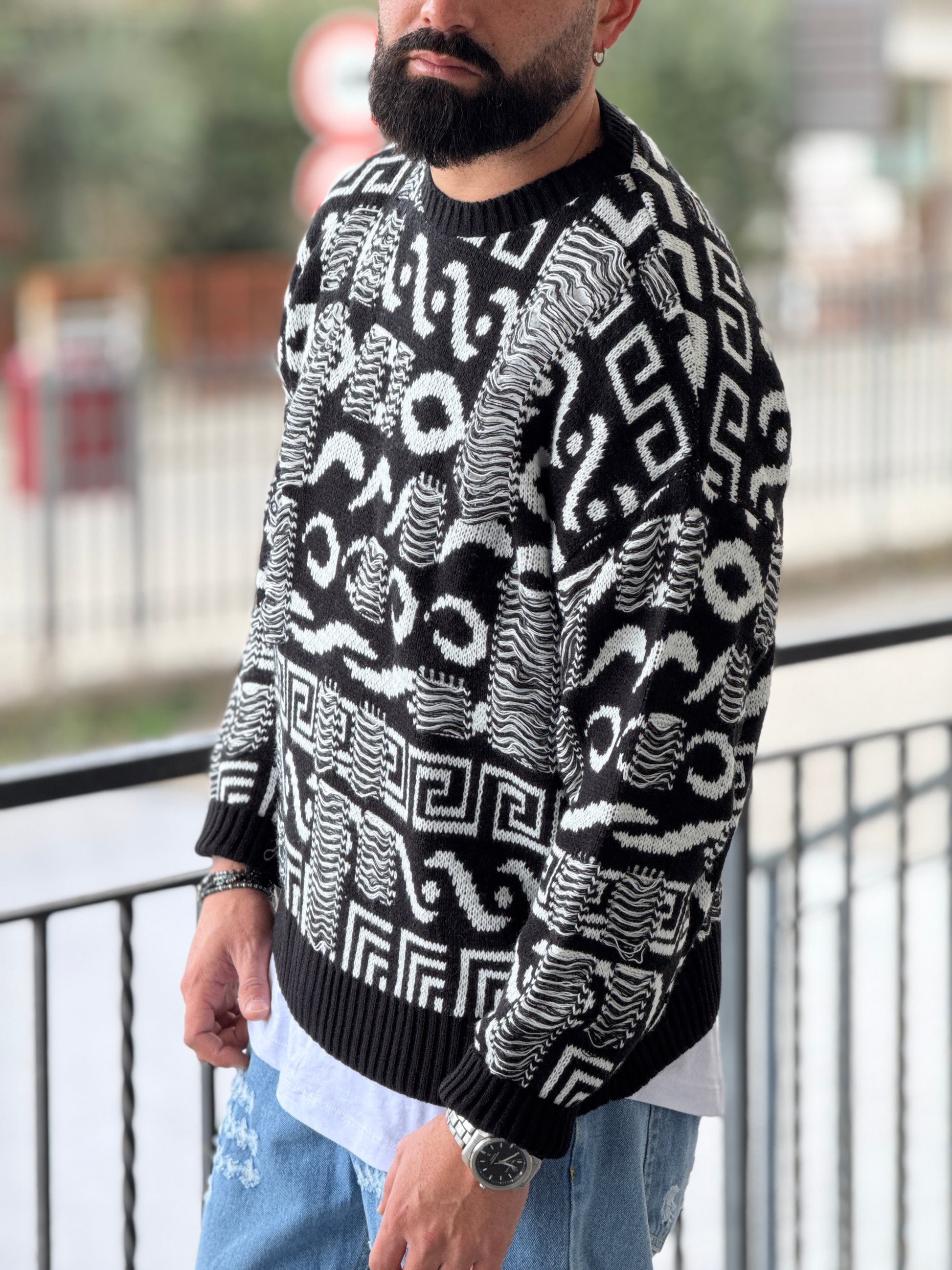 Pullover oversize bianco/nero new job brand