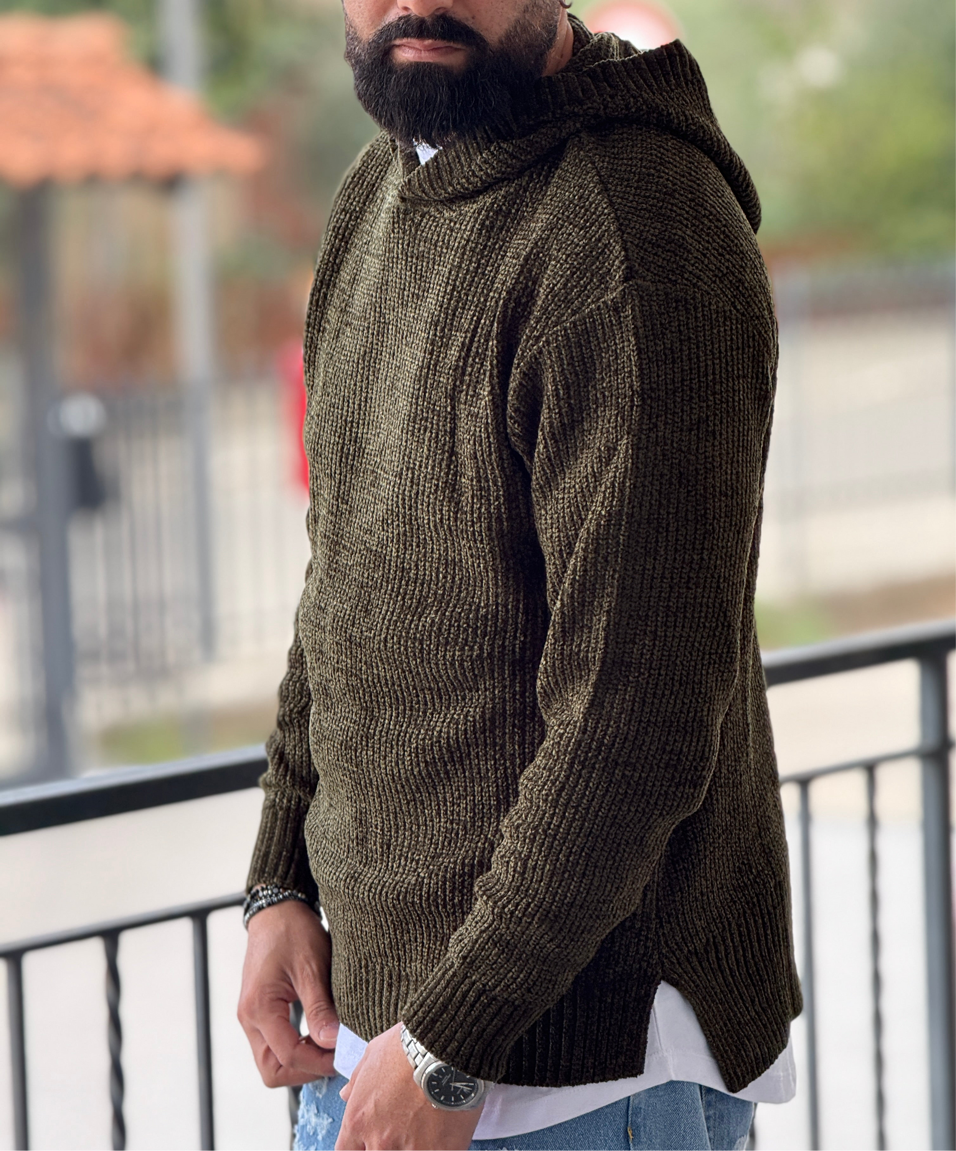 Pullover oversize cappuccio verde militare ciniglia new job brand