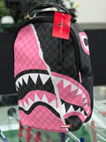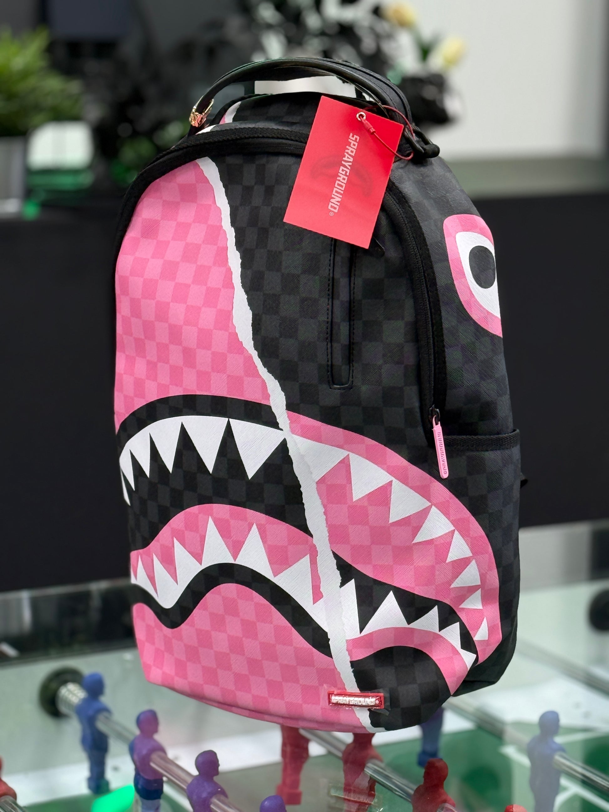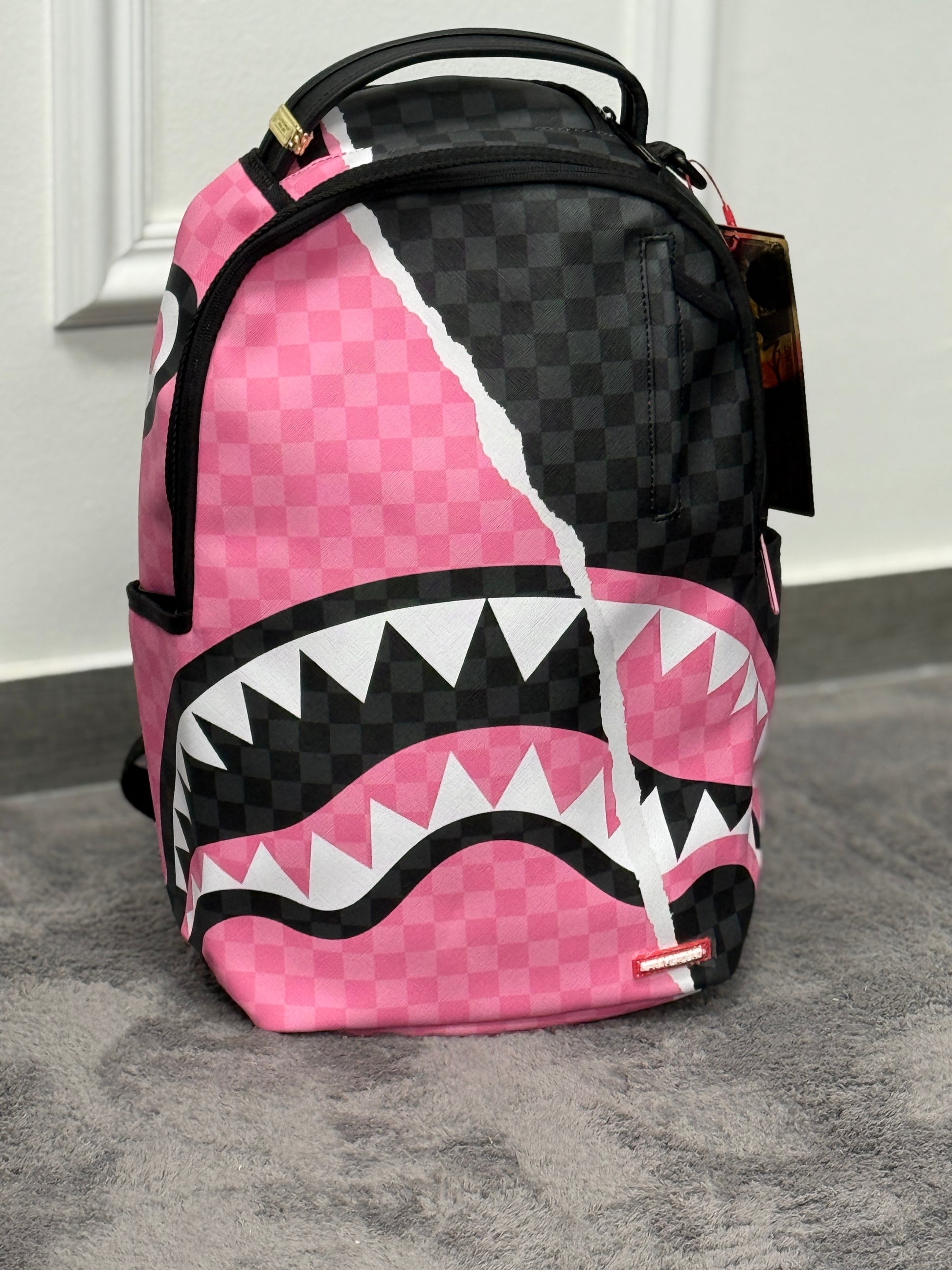 SPRAYGROUND Zaino TEAR SIP nero e rosa da donna. Zaino dal design funzionale e curato nei dettagli, realizzato in 100% cloruro di polivinile per garantire resistenza e durata nel tempo. Le dimensioni di 27 x 45 x 15 cm lo rendono ideale per l'uso quotidiano, offrendo spazio ben organizzato grazie alla cerniera frontale con tasca, alle pratiche tasche laterali e alla tasca portaoggetti con cerniera. All'interno presenta uno scomparto separato per laptop rivestito in morbido velluto e una tasca organizer in rete, mentre un ulteriore scomparto in velluto è dedicato agli occhiali da sole. Il retro è dotato di imbottitura ergonomica in rete per un comfort ottimale, con cinghie regolabili che permettono una vestibilità personalizzata. Le cerniere dorate con ferramenta in metallo e il distintivo in metallo "Sprayground Authentic" aggiungono un tocco premium. Completa il tutto la manica posteriore scorrevole che consente di fissare lo zaino al bagaglio a mano, liberando le mani durante gli spostamenti. Stagione autunno inverno